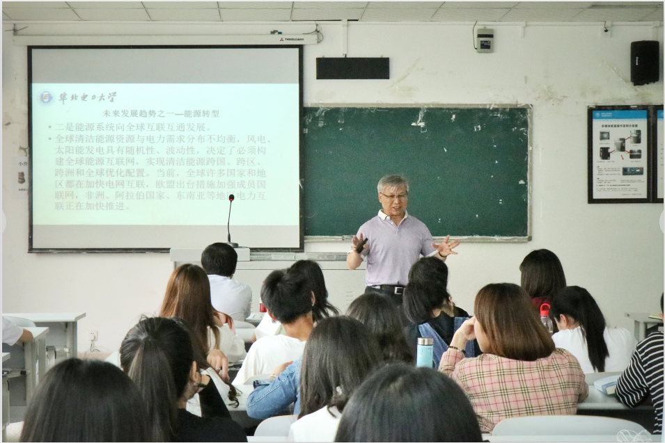讲座伊始,闫庆友教授以具体数据指出“中国已建成世界上规模最大、配置能力最强的特高压交直流混合电网”,进一步分析我国当前电网发展的现状、优势及困境。接着,闫教授详细介绍了电网未来能源转型、电力需求、清洁能源等五大发展趋势。他以自身广博的眼界和深厚的学术底蕴将一个充满魅力同时又与我们生活息息相关的“电网”世界呈现在同学们面前,令人憧憬。
