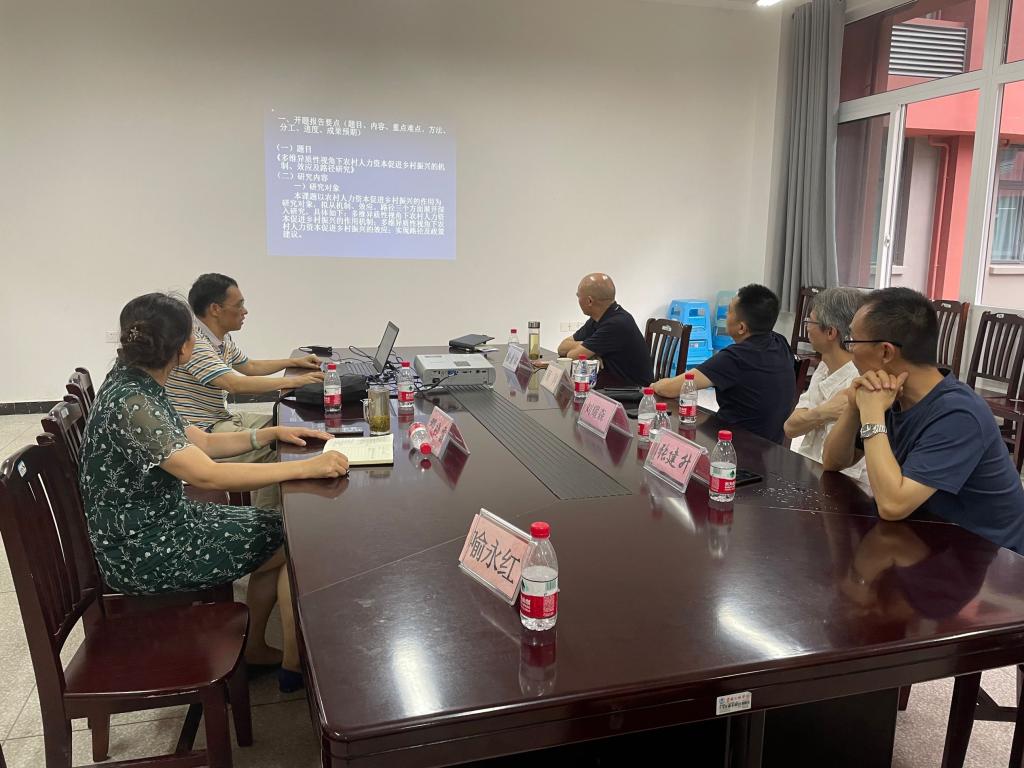 报告会上,我院李素文教授、姚旭兵副教授分别围绕其所获立项的国家社会科学基金项目“相对贫困治理与乡村振兴的政策衔接研究”“多维异质性视角下农村人力资本促进乡村振兴的机制、效应及路径研究”,从课题研究背景、研究意义、研究内容、研究方法、重点难点、创新之处、研究过程、预期成果等方面作了详细汇报。6位专家对两位课题负责人的报告,分别从学术积累与选题凝练、学术价值与应用价值、研究方法与研究路径、问题导向与创新之处、论证内容与预期成果等方面进行了深度点评和专业指导。专家组充分肯定了课题的前期准备工作和课题总体框架、预期目标和任务分工、研究计划与实施步骤等,认为项目选题具有时代意义、影响深远,同时提出许多富有建设性的意见和建议,本次开题报告会的顺利举办进一步明晰了各课题组的研究思路。最后,学院院长邓晓霞教授对各位专家的点评和指导、对我院科研工作的支持表示衷心的感谢,并表示学院将为课题的顺利完成提供充分的支持,进一步提升学院的科研能力和影响力。