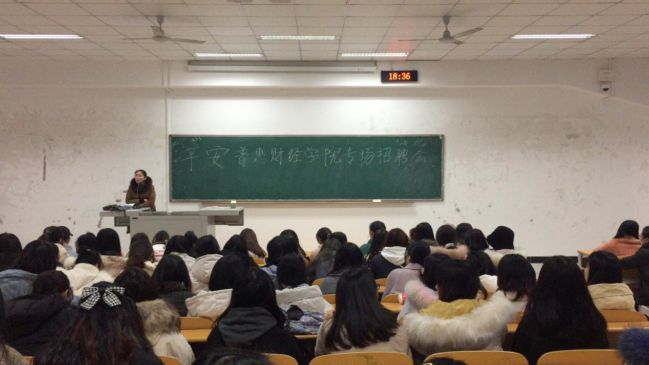 为积极促进我院就业,2020年12月17日晚18:30分,我院特邀重庆万州平安普惠公司在明辨楼2栋204为我院2021届应届毕业生举办了专场招聘宣讲会。