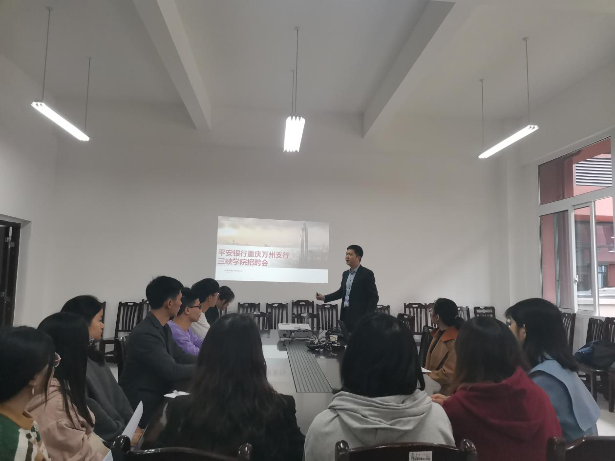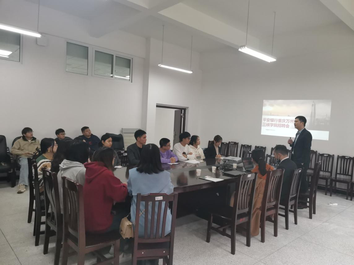 为切实做好我院毕业生就业工作,大力构建毕业生与用人单位的交流平台,积极为用人单位输送应用型人才,我院于2021年4月12日下午三点在博学楼3栋112举办了平安银行(万州支行)现场招聘会。学院领导对此次招聘会高度关心和支持,并亲临招聘现场与用人单位和毕业生交流。