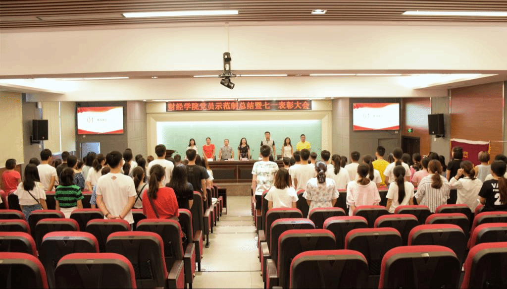 大会在雄壮的国歌声中拉开序幕,全体党员观看了学院党员示范制活动视频。