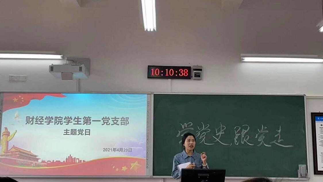 2021年4月29日上午,为纪念建党100周年,深入学习贯彻习近平总书记在党史学习教育动员大会上的讲话精神,进一步传承革命先辈与先进典型的精神动力,激发爱党情怀,坚定信心振奋精神。太阳成集团tyc33455学生第一党支部在博学楼2栋307组织全体党员开展了“学党史,跟党走”的主题党日活动。