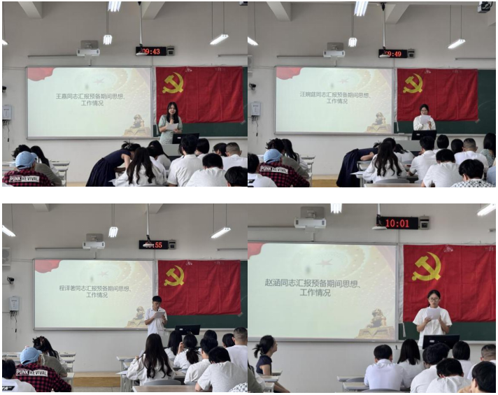 会议第一项,预备党员转正环节。首先,王嘉等4名预备党员依次向党组织汇报预备期间的思想、学习、工作等情况。随后,入党介绍人分别介绍预备党员在预备期间的培养考察情况,并对其能否转正表明意见。与会党员充分发言,经无记名投票表决,同意王嘉等4名同志按期转为中共正式党员。