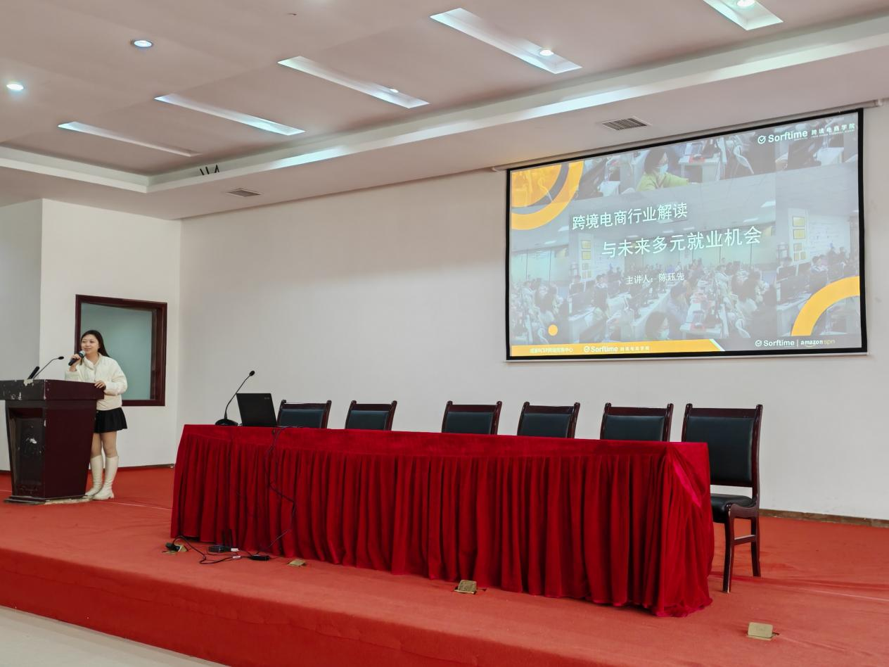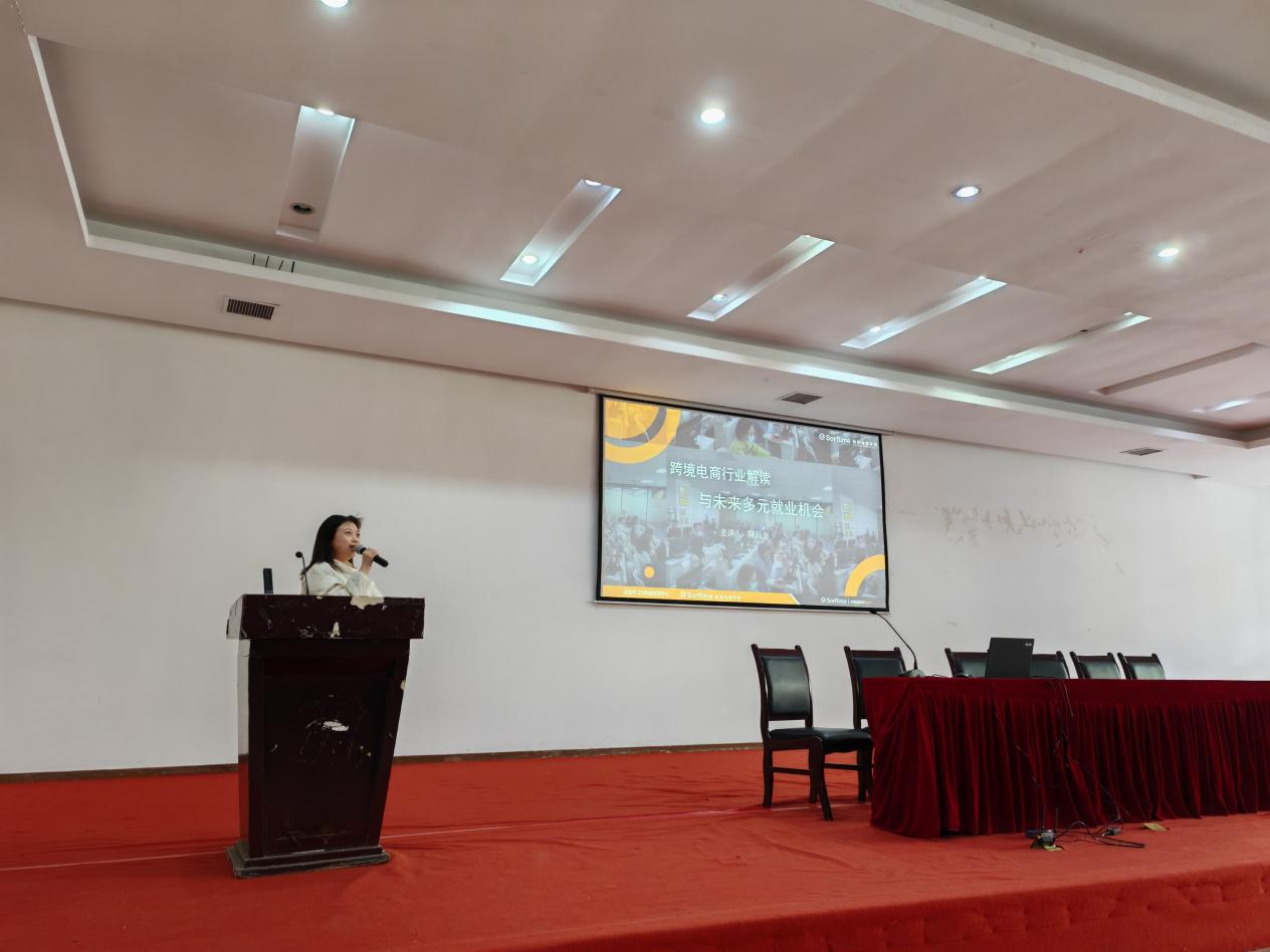 之后,菲欧坦(重庆)数据科技有限公司的程老师上台进行宣讲。程老师深入浅出地介绍了跨境电商业务的现状和发展趋势。她指出,随着全球化的加速和互联网的普及,跨境电商已经成为国际贸易的重要组成部分,为财经专业学生提供了广阔的发展空间。程老师详细讲解了跨境电商的运营流程、市场分析、营销策略以及风险防控等方面的知识,并结合实际案例让学生们对这一行业有了更直观的了解。