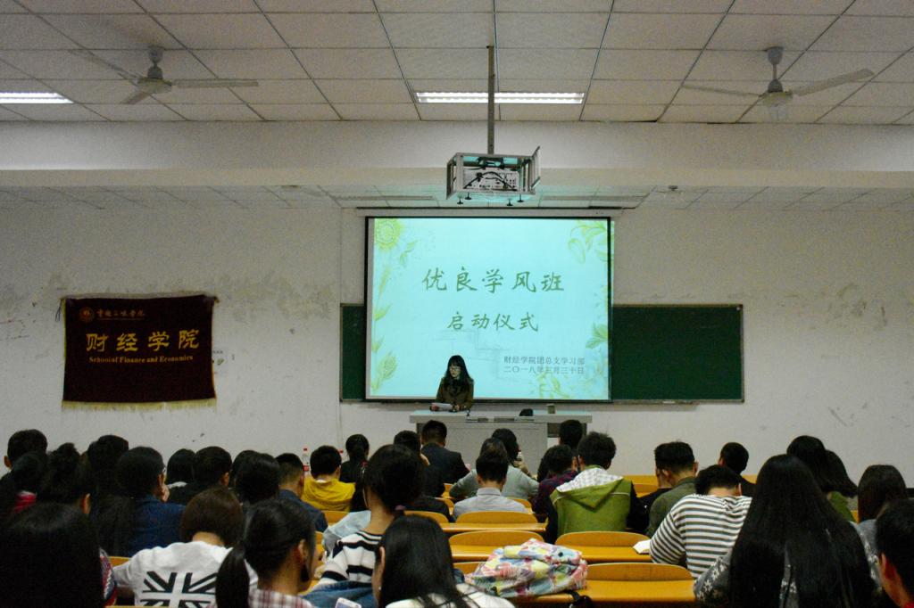 2018年3月30日晚,由我院学生会学习部承办的“优良学风班启动仪式”在2教201举行。学院党总支副书记骆孟鑫,学工办主任代小菊,辅导员彭华老师、闫兴运老师,学生干部及各班班委均参加本次活动。本次活动由廖安超老师主持。