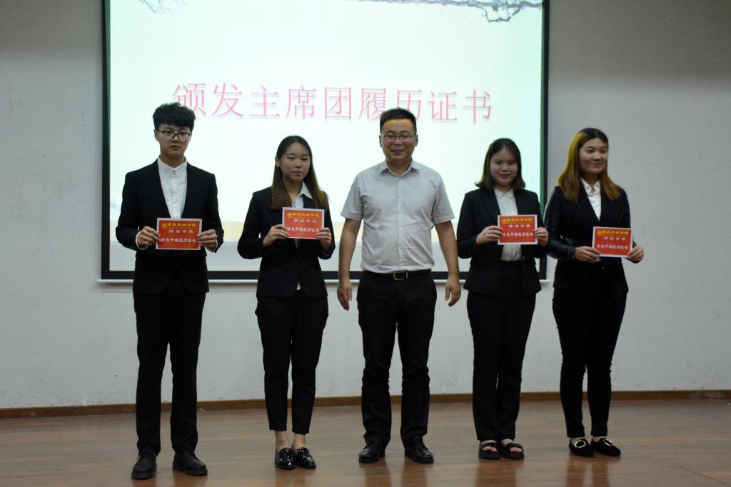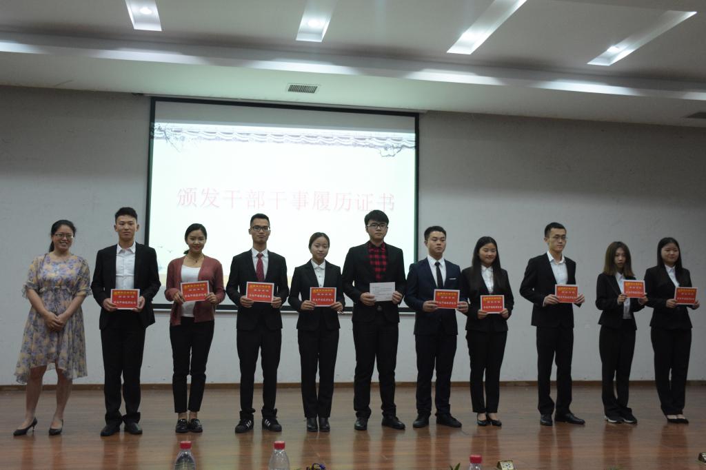 大会伊始,由学生会主席团代表做总结汇报,主席团作为学生会的核心人员, 负责与老师的接洽和任务的下达,对学生会日常事务,大型活动和人力资源进行宏观调控。学生会的正常运行离不开主席团的辛勤工作。大会嘉宾为学生会主席团成员分别颁发了履历证书。接下来是学生会下辖的七个部门和六个协会的部长和会长做总结并接受履历证书,他们是学生会的中流砥柱,负责部门日常具体事务的管理与资源调配,辅助主席团完成学校团委、学院团总支分配的工作。紧接着,兼职班主任上台接受履历证书,他们成功帮助大一新生创建了班级内部良好的风气,为他们的学业打下基础。然后大会嘉宾为优秀干事和优秀班主任颁发了奖状。最后由学工办主任代小菊老师做总结发言,代老师充分地肯定了学生会一年的工作,表达了对全体干部和干事的感谢,并且对未来新一届的学生会的工作进行了展望。