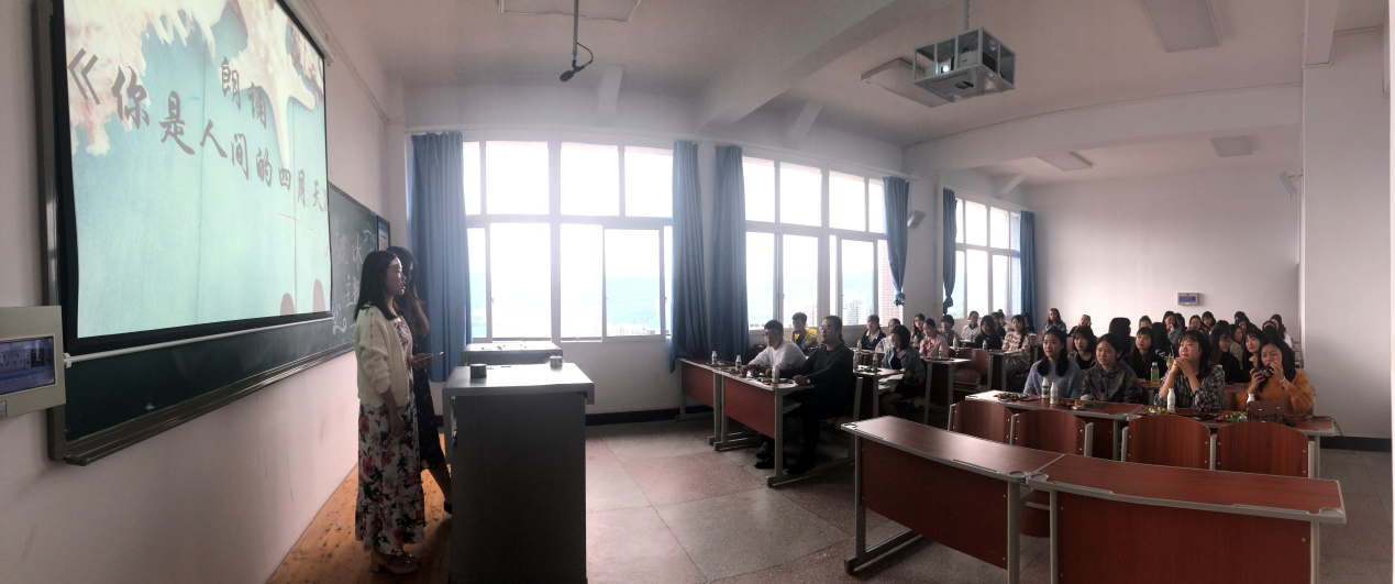 活动融汇了演唱、朗诵等多种艺术形式,十几个精彩的节目使活动现场气氛活跃,充满青春的朝气。同学们精神饱满、踊跃参加团体活动,充分展示了各自的实践能力。本次班会的成功召开,不仅丰富了同学们的大学生活,拉近了师生之间的交流,而且让同学们得到了各方面的锻炼。