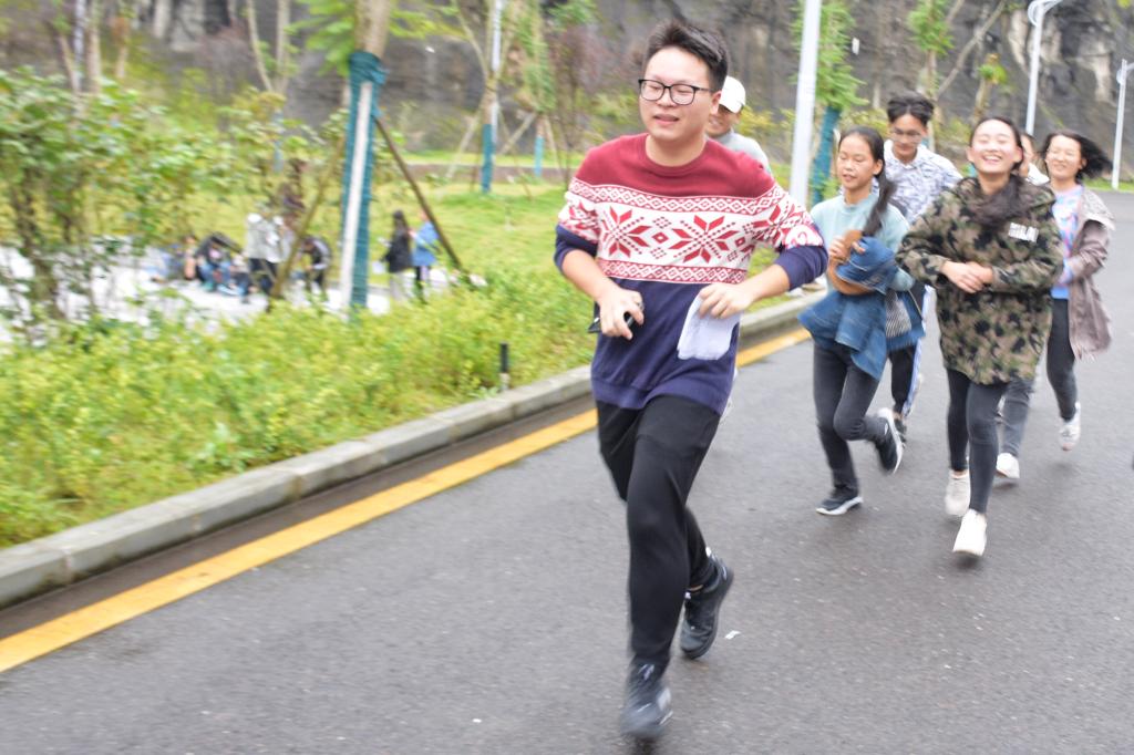 廖安超老师宣布比赛开始后,热情洋溢的参赛者满含激情的喊出自己的队名和口号,然后大家顺利出发,每队根据主办方分发的地图自行规划路线,最后优先集齐印章并到足球场登记的队伍获胜。在一系列有趣的游戏后,疲惫而又欢快的跑向终点,跑向属于他们的胜利。完成任务的各队队员,在终点领取属于他们的奖励。看着他们即使很疲累但仍笑容满溢的脸颊,让人不禁想到这就是青春1