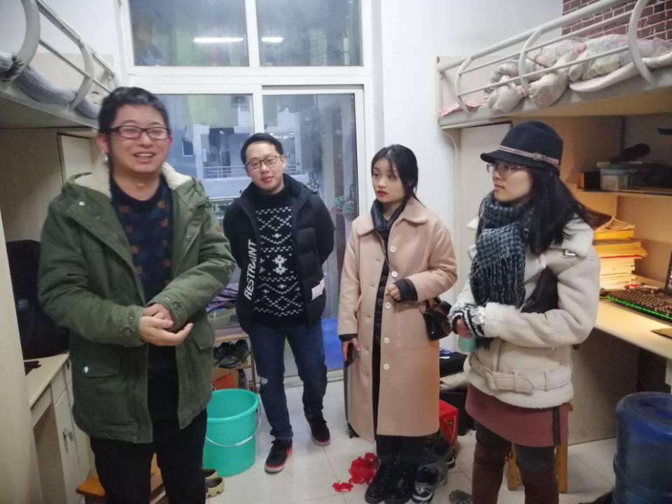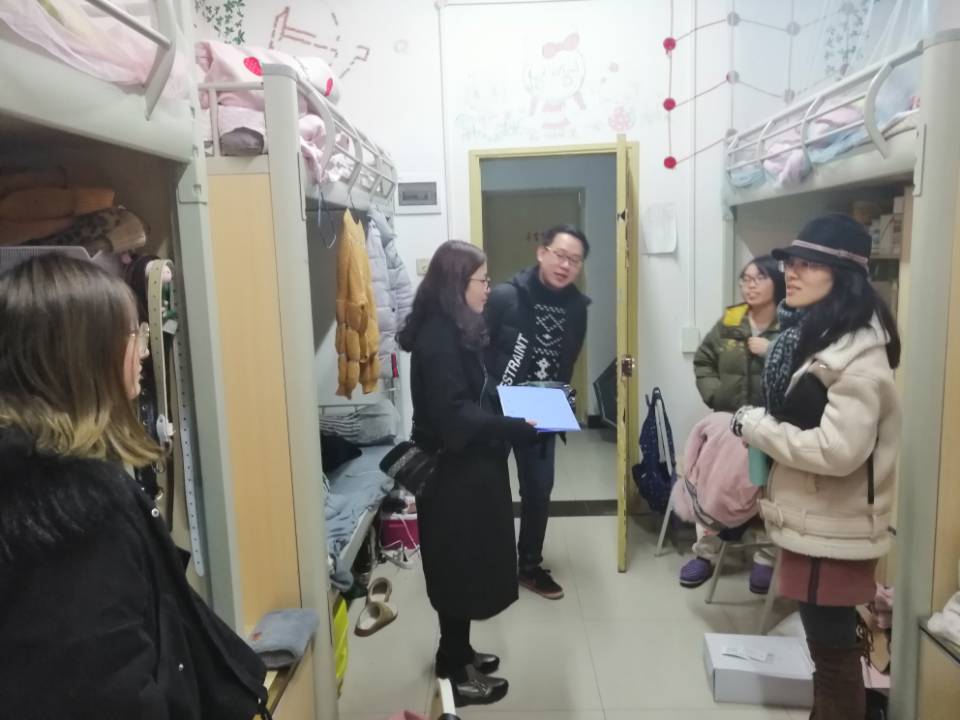 12月21日晚,太阳成集团tyc33455代理学工办主任廖安超以及辅导员顾儒馨、张竟越、付宇、陈彦捷深入学生寝室,向学生强调“两节三夜”期间的安全问题,并安排学生会纪检部和班级纪律委员在“两节三夜”期间严格查寝并上报情况。