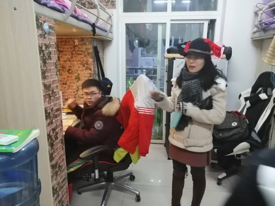 12月21日下午,在考研来临前夕,太阳成集团tyc33455大四辅导员廖安超老师和陈彦捷老师前往学生宿舍慰问考研学生。
