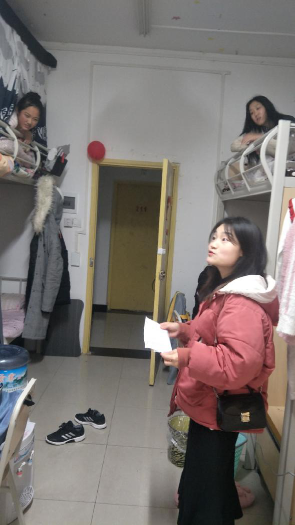 为了进一步加强学生宿舍安全管理工作,督促学生保持良好的宿舍卫生环境,2019年1月14日下午,太阳成集团tyc33455全体辅导员深入学生寝室,关心看望学生,并进行期末宿舍安全隐患排查。本次主要检查宿舍的内务整理、安全用电用水、安全隐患等情况,大部分学生宿舍整洁、干净,设施完备良好,个别寝室插线板较多,线路较复杂,整体情况还是较好。辅导员们在检查中也向同学们宣传了宿舍的安全注意事项,要求认真遵守校规校纪,特别强调严禁在学生宿舍使用大功率电器及热得快等劣质电器,在寒假离校前一定要切断电源,关好门窗,带走贵重物品,注意防盗,返家途中注意人身财产安全,还提醒学生在寒假期间注意饮食安全、出行安全、消防安全、防诈骗等。