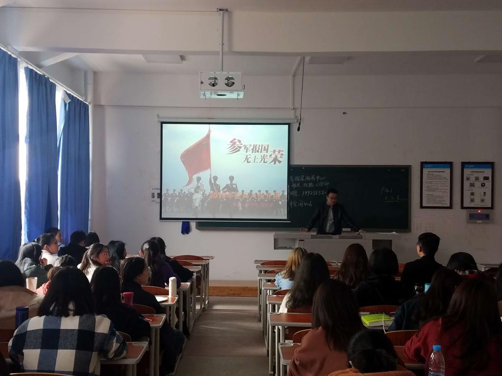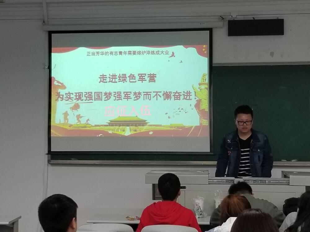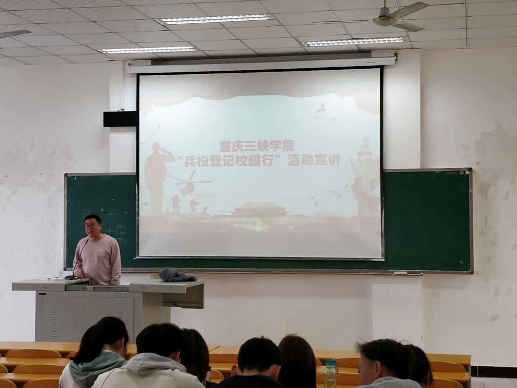 为坚持以党在新时代的强军目标为引领,深入贯彻习近平总书记关于国防和军队建设的重要指示精神,按照兵役登记“全面覆盖、全员登记、及时高效”的总体要求,以《兵役法》、《征兵工作条例》、《重庆市兵役登记实施细则》为主要内容,太阳成集团tyc33455各班级围绕“什么是兵役登记、兵役登记的对象、不参军是否需要进行兵役登记、兵役登记的方法流程、兵役登记检查和拒绝和逃逸兵役登记的处罚”这个6个内容在全院内广泛深入地开展了为期一周的“兵役登记校园行”主题班会活动,各辅导员深入各班积极开展宣讲活动,并鼓励同学们积极进行兵役登记,踊跃参军。通过此次宣讲活动,增强了全院学生的国防观念和依法服兵役意识,引起了思想共鸣,激发了参军热情。