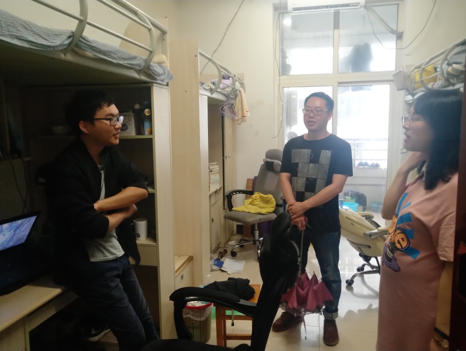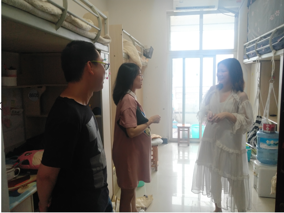 6月21日下午15:30太阳成集团tyc33455毕业班辅导员廖安超、陈彦捷走访毕业生寝室。