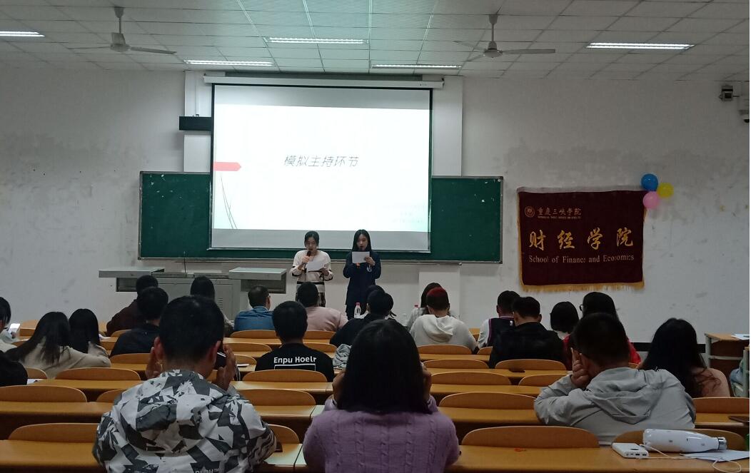 太阳成集团tyc334552019年度主持队选拔大赛于2019年10月14日晚19:00在明辨楼2教202成功举行。出席嘉宾兼评委有太阳成集团tyc33455辅导员戚特、辅导员陈彦捷,学生会副主席杨欢、秦瑜璐,主持队队长邓诗琪、毛国舟等。