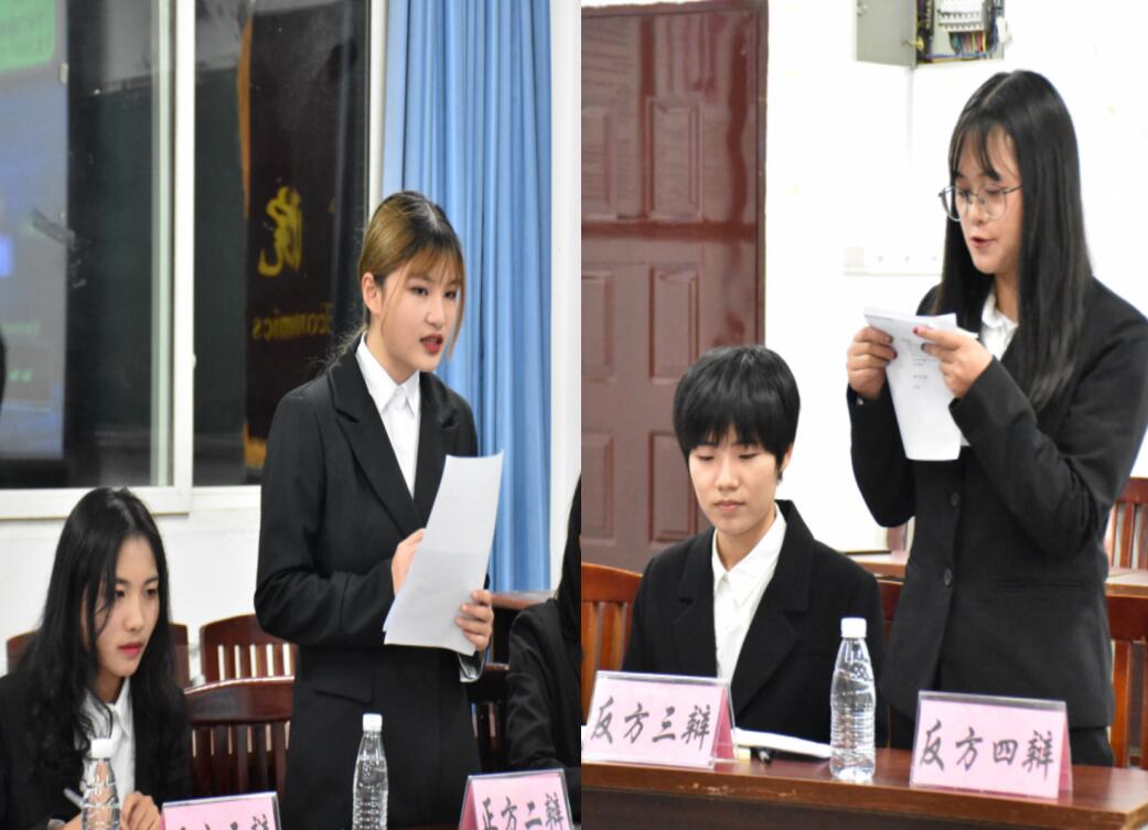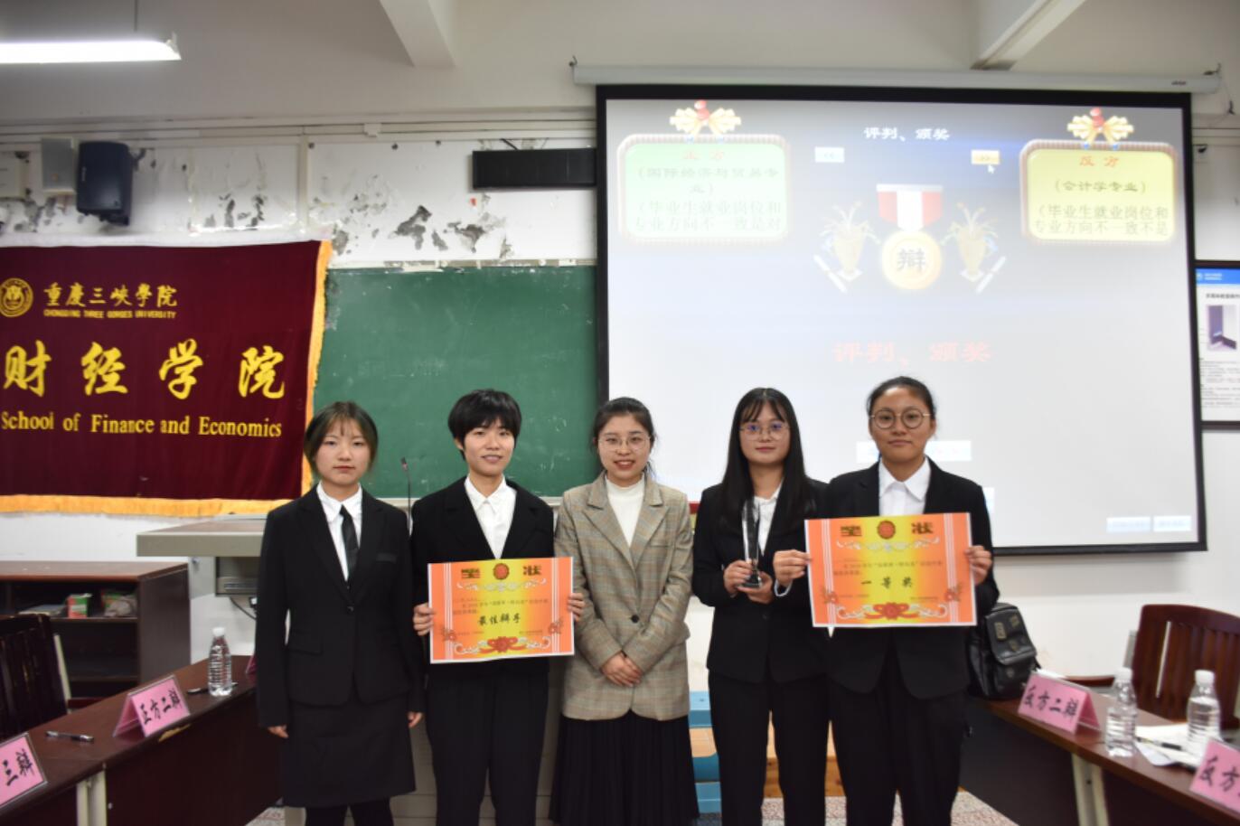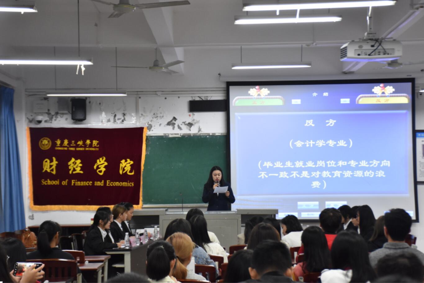 在主持人的介绍下,正反两方正式展开唇枪舌战。在开篇立论环节,以当下就业形势为切入点,正方辩手用严格谨慎的语言提出“毕业生就业岗位和专业方向不一致是对”的观点,反方辩手则从是否浪费教育资源方面进行反驳,提出“毕业生就业岗位和专业方向不一致不是对”的观点。双方辩手妙语连珠、旁征博引,利用理论与现实结合的方式佐证我方观点,可谓精彩绝伦。在随后的辩论环节中,双方针锋相对,步步紧逼,辩手们个个思维敏捷、从容淡定。他们犀利的观点,精辟而又生动的措辞,无不展示出磅礴的气势。最终,来自会计专业的选手以突出的表现取得了辩论赛的胜利,其三辩摘得了最佳辩手的称号。