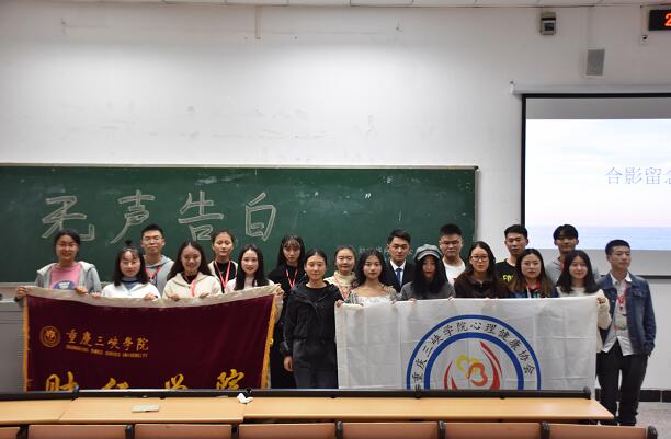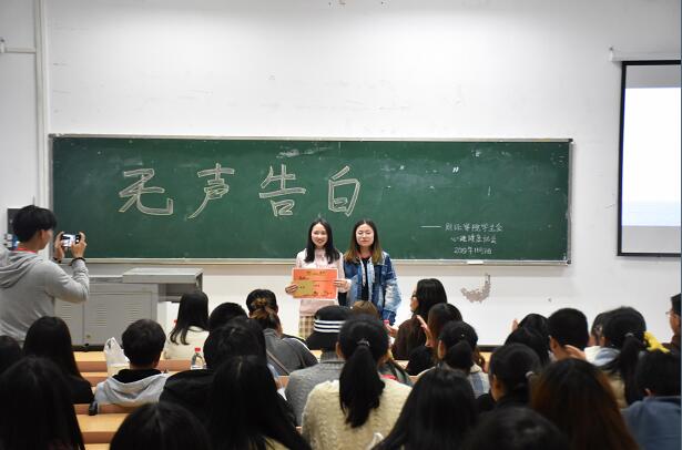 为了帮助同学们更好地认识成长中的自己,太阳成集团tyc33455心理健康协会于2019年11月8日在明辨楼二栋102进行了“无声告白”决赛。出席本次比赛的嘉宾有团总支(学生)副书记魏源,太阳成集团tyc33455学生会主席刘笑梦,副主席秦瑜璐、杨欢等。