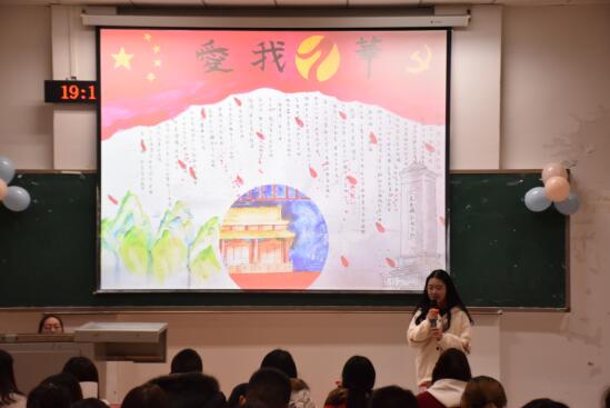 在大赛上半场,前5组选手依次展出本组的手抄报原件并利用PPT进行讲解,选手们依次介绍了构图要素、绘画寓意、灵感来源以及活动心得。中场短暂的游戏休息后,大赛进入下半场。大赛过程中,十组选手们都很好地利用本组的手抄报诠释了活动主题,表达自己对祖国的热忱,用鲜红的主色调展示出当代大学生的爱国情怀。最终,19级汉语教学的鲍寒冰小组荣获一等奖;19级国际贸易的李若男小组、19级小教3班的彭娜小组荣获二等奖;19级经济统计学的杨琪小组、19级服装设计的柯志鑫小组以及19级教师教育学院的杨方芳小组荣获三等奖。