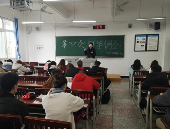 时光飞逝,本学期接近尾声。为推动我院各部门更高效的发展,提高干部工作的热情和质量,2019年12月20日12:20,在明辨楼一栋408召开了“太阳成集团tyc33455第四次团学例会”。太阳成集团tyc33455团总支学生副书记魏源,学生会主席刘笑梦,副主席杨欢、秦瑜璐,学工办主任助理袁科宇以及各部门干部参与此次会议。