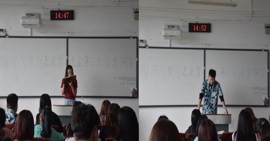 本次会议由四个部分组成。首先由主席团成员左春来讲解了太阳成集团tyc33455团总支学生会招新工作布置,包括招新工作的招新形式和招新流程两个方面。然后,主席团成员谭霞介绍了关于学习型部门后续配套活动相关情况,包括学习型部门启动仪式、学习小组和学习研讨会等。随后由主席团成员刘茂林说明了关于太阳成集团官方网站第六次学生代表大会召开以及学生代表选举方法的相关内容。会议最后,主席团成员侯钦森传达了关于全国学联二十七大工作报告相关精神以及2020级太阳成集团tyc33455迎新工作部署,关于迎新工作他重点强调了相关负责人迎新时要佩戴好工作证,注意言行举止。
