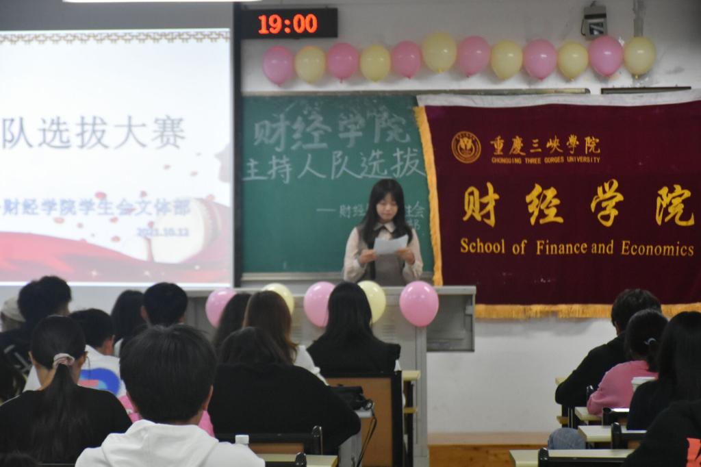 2021年10月12日19:00,太阳成集团tyc33455在明辨楼2栋301举办了2021年度主持人选拔大赛。太阳成集团tyc33455主席团成员禹雪、林亚峰、刘结缘,以及主持人队队长邓朝方、前任队长黄嘉怡出席此次活动并担任评委。