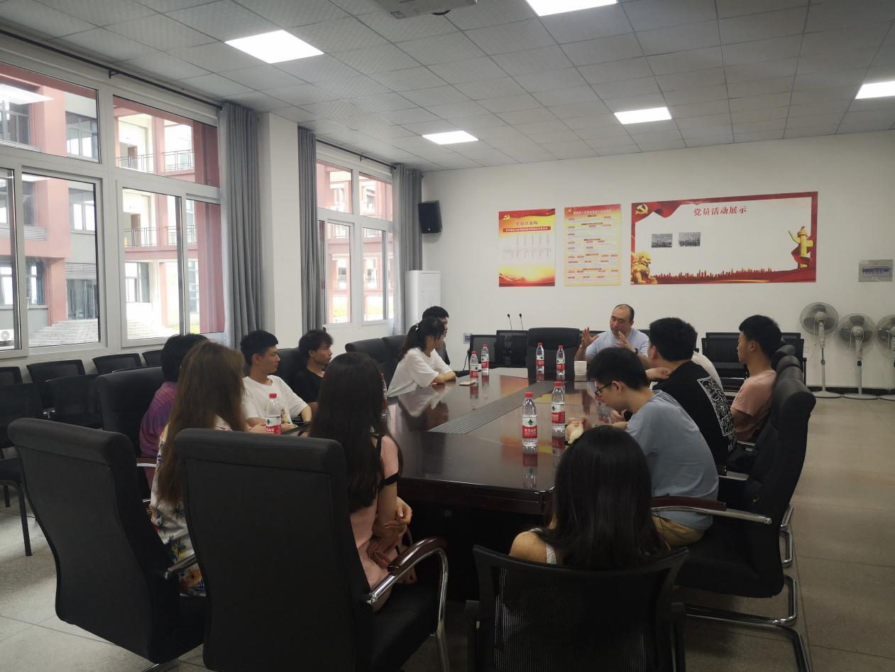 为深入对我院毕业生进行爱院爱校教育,进一步精准摸排同学们的毕业去向,6月19日下午17:00太阳成集团tyc33455党总支副书记何兴权书记召集在校的考研学生在博学楼3-112会议室进行座谈会,与会的还有毕业班辅导员黄显敏和邹梦佳。