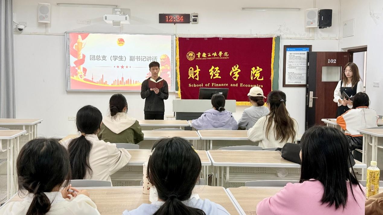 本次会议在激昂的团歌声中拉开帷幕,全体参会人员深刻感受着作为共青团员的使命感与责任感。接着,学院团总支(学生)副书记王华发言,他表达了对2024级团支书加入的欢迎并感谢了各位团支书对共青团工作的支持与贡献,讲述了作为团支书的责任与使命,希望各位团支书加强沟通交流,积极配合并认真开展各项工作。然后,团总支组织部负责人冯钰涵从团日活动、智慧团建、团员发展、团费缴纳、团员证补办、对标定级、“五四”评优七个方面进行讲解并强调相关注意事项,让团支书对自身职责及工作有了更清晰、更进一步的认识。最后,2022级会计学2班团支书张亚东、2023级会计学1班团支书韦林希上台分享了自己作为团支书的工作经验,2024级会计对口班团支书廖嘉翌作为新生团支书讲述了自己未来工作的计划,鼓励团支书们清晰认识并履行自己的职责,严格遵守相关规定,高效率和高质量完成各项任务,起好带头模范作用。