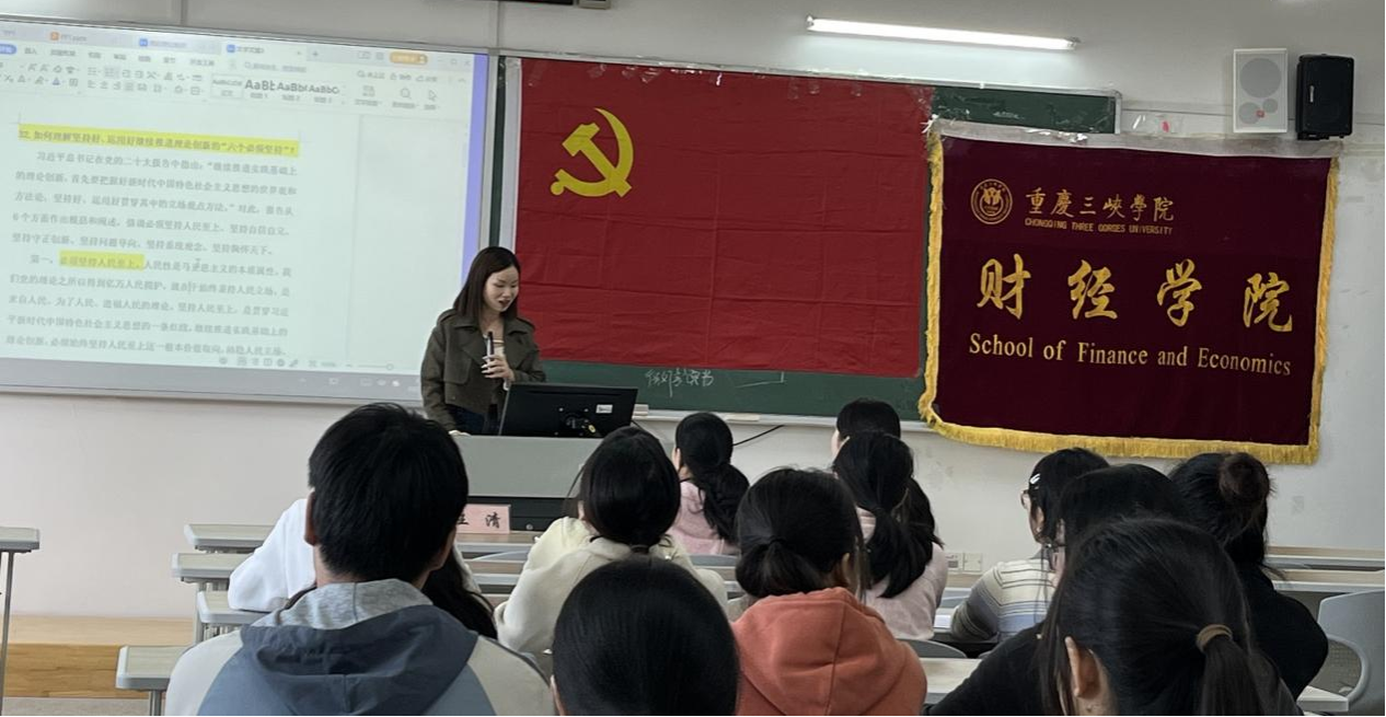 宣讲会伊始,全体参会人员观看了视频《二十届三中全会解读:这些改革举措与我们的生活息息相关》,引发了同学们对“为什么要学习党的理论知识”的思考。随后,王清老师以《道可坐论,理不可空谈》为主题进行宣讲,强调学习党的政治理论的重要性,鼓励学生们从党的基本理论出发,深入了解中国共产党及发展史,启蒙同学们要将党的理论落实到具体实际中。接着,学生代表李佳、学生党员代表张亚东相继发言,他们分享了自己在党支部的成长历程以及为师生服务的经历,鼓励同学们要树立正确的价值观,端正入党动机,积极向党组织靠拢。发言完毕后,学生党员张亚东解答了同学们就入党流程、入党条件、党员的责任与担当等方面的疑惑,加深了同学们对党组织的认识。最后,宣讲会在全体合唱《我和我的祖国》的歌声中结束。