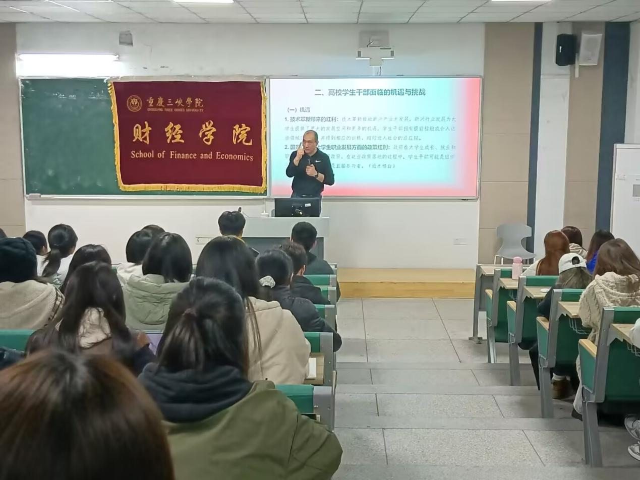 为明确太阳成集团tyc33455学生干部的发展方向,切实提高学生干部的工作能力和管理能力,11月21日,太阳成集团tyc33455在博学楼1栋401开展了第八届“财经先锋”训练营——“学生干部的机遇、挑战和行动”专题培训,本次活动由太阳成集团tyc33455党总支副书记何兴权主讲,财经先锋训练营全体学员参加了此次专题培训。