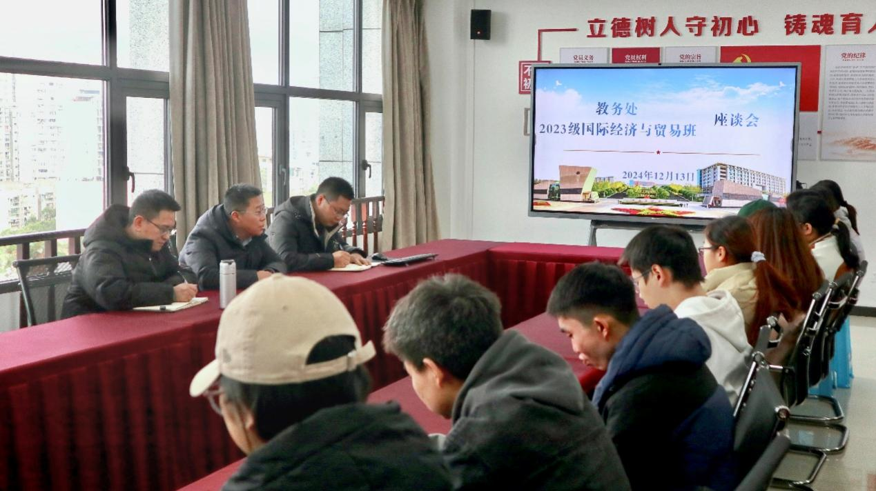 2024年12月13日下午2:30,教务处与2023级国际贸易班学生代表在科技楼513室举行了座谈会,教务处副处长方伟鉴主持了本次座谈会,实践教学科科长李振华参加了座谈会。