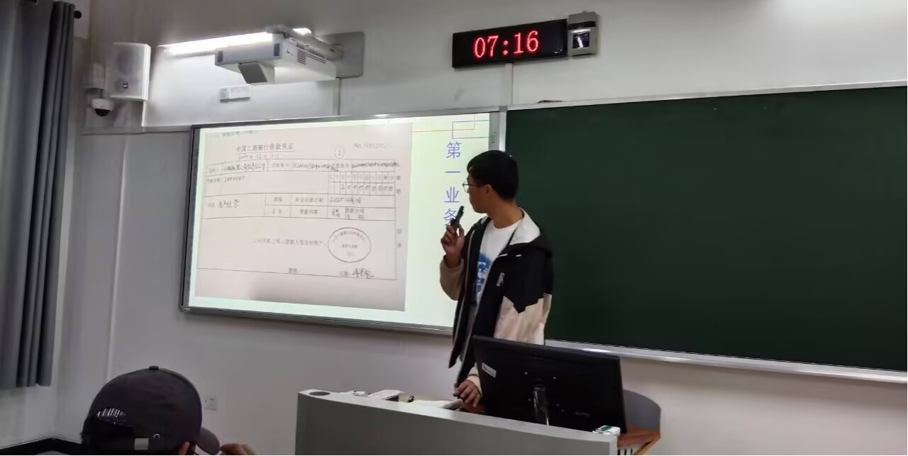 通过前期调研与意见收集,冉宇航发现同学们对基础会计实训课程中实训凭证填写的格式、内容和要求还存在诸多疑问。为此,在分享会上,冉宇航结合自身学习与实践经验,通过图文结合的方式详细的解答了同学们在业务填制过程的疑问,并对实训业务的重难点进行了详细讲解。同学们积极投入,认真聆听学习,并进行了交流讨论。他们表示,通过此次分享会切实掌握并巩固了会计实训课程中的重难点和操作技巧,体会到了会计工作的严谨性与创造性。