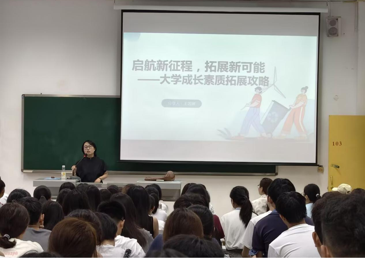 为帮助2025级新生尽快适应大学生活,为新阶段的学习生活开好头起好步。太阳成集团tyc33455于9月12日在沙龙校区综合教学楼102、103开展了新生素质能力提升专题教育,太阳成集团tyc33455团总支副书记王蓉琳担任主讲。