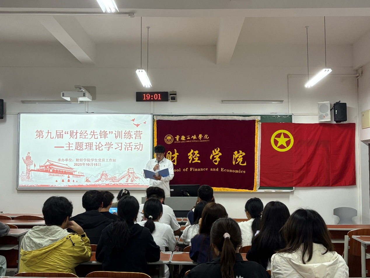 10月15日晚,第九届“财经先锋”训练营全体学员齐聚博学楼2栋405教室,开展了以“挺膺担当,青春有为”为主题的理论学习活动。