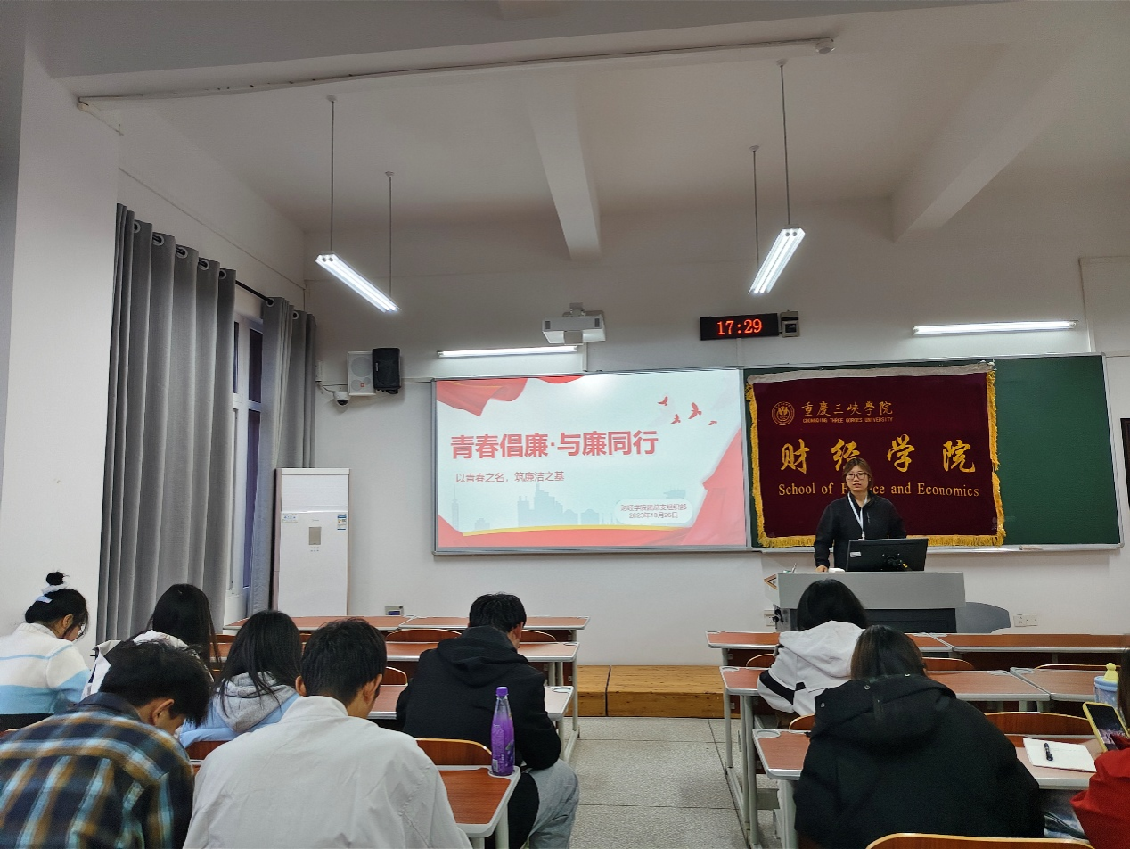 本次活动围绕“何为青春倡廉”“青年为何要倡廉”“青年倡廉该如何做”三个维度逐层展开。在概念阐释环节,主讲人祝旺佳明确指出,“青春倡廉”的核心在于青年以实际行动践行廉洁理念,既要坚守“不腐败”的纪律底线,更应成为廉洁文化的主动传播者。在意义阐述部分,她从社会发展、个人成长与时代要求三个角度,系统分析了青年倡廉的必要性与现实意义。在实践指导环节,祝旺佳结合校园生活与未来职业场景,提出“知廉、守廉、传廉”三步走实践路径:通过深入学习《新时代公民道德建设实施纲要》筑牢思想根基;在考试诚信、实习操守等具体环节中坚守廉洁底线;并积极参与主题团日、善用社交平台传播廉洁文化,营造清风正气的校园氛围。