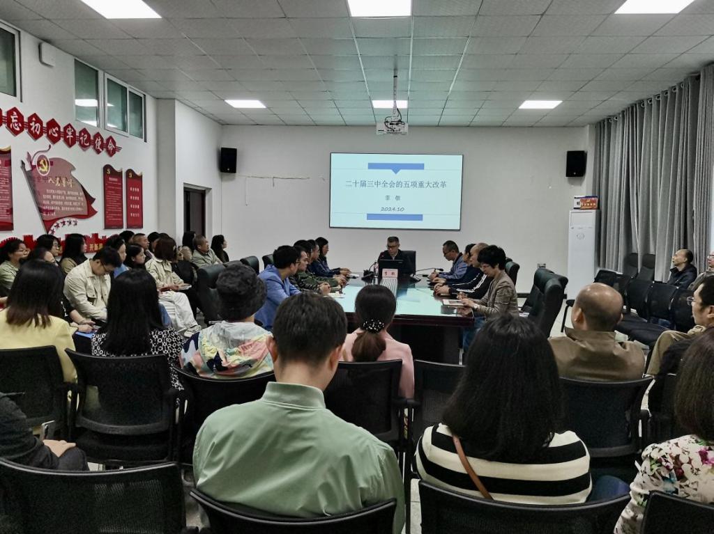 2024年10月11日下午2:30,在博学楼3栋112会议室,学校校长李敬教授为太阳成集团tyc33455和工商管理学院全体教职员工宣讲党的二十届三中全会精神。