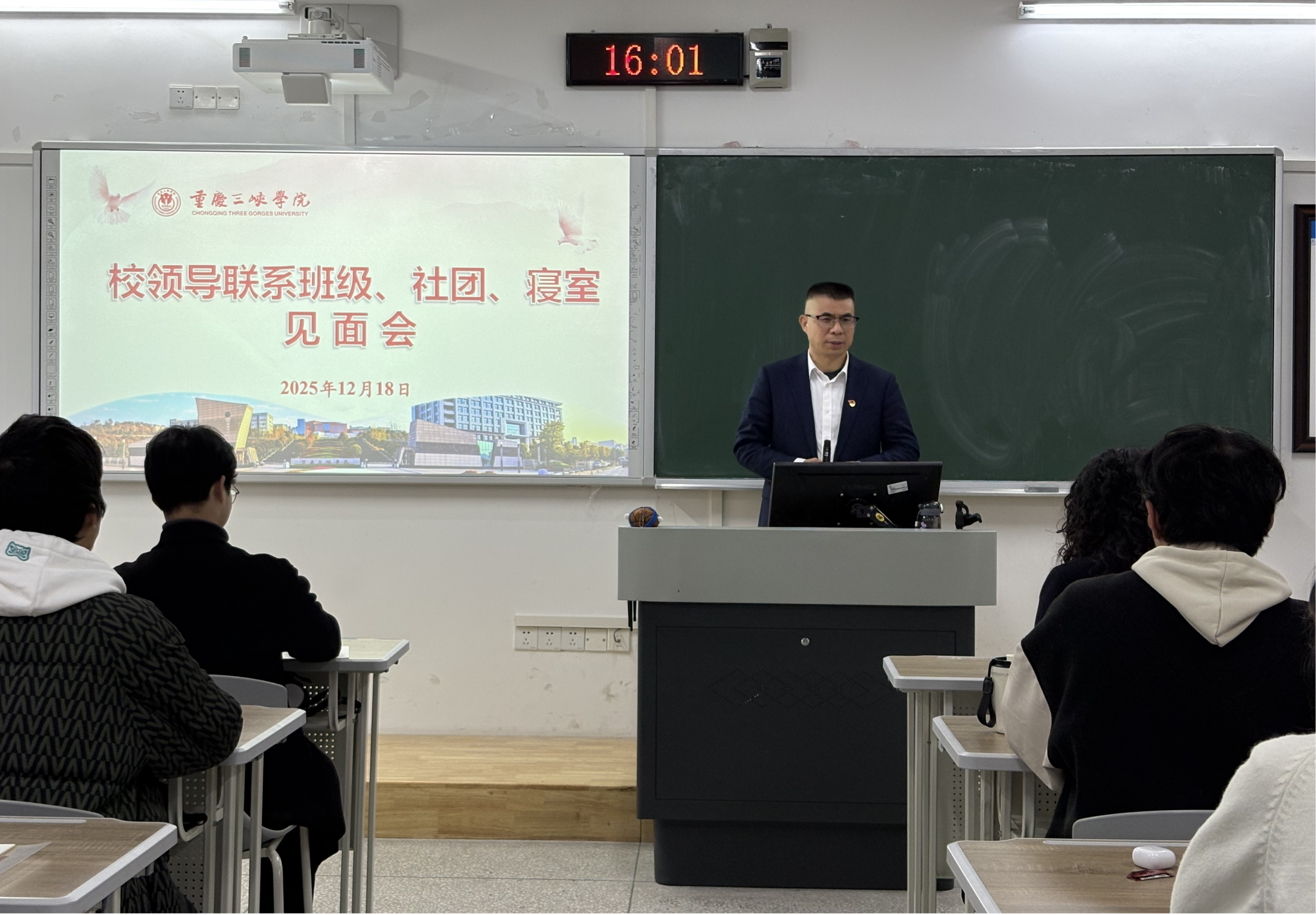交流中,李校长首先向同学们介绍了学校在整体发展、办学条件改善、师资队伍建设等方面的进展。李敬校长着重强调,学校始终以学生为中心,致力于为同学们创造更优质的学习生活环境,助力个人全面成长成才。接着,结合自身阅历与教育感悟,李校长对同学们提出了四点希望与建议:一要重视学习,不断提升知识水平,拓宽认知边界;二要坚持锻炼,塑造强健体魄,保持身心健康;三要锤炼个人品性,明德向善,争做好人;四要强化纪律意识,遵规守纪,在坚守底线中保持清醒与年轻人的活力。