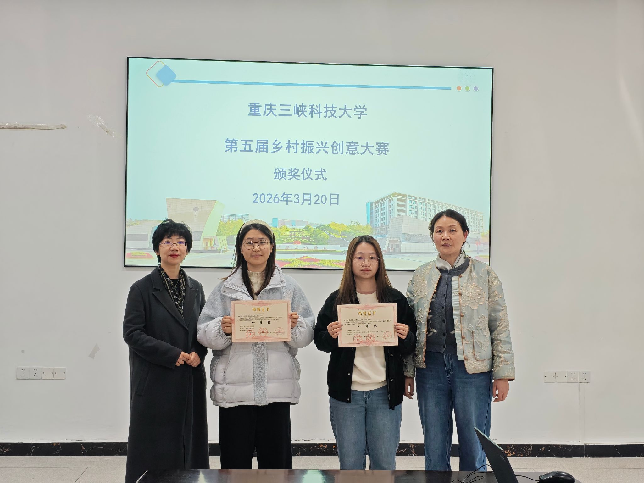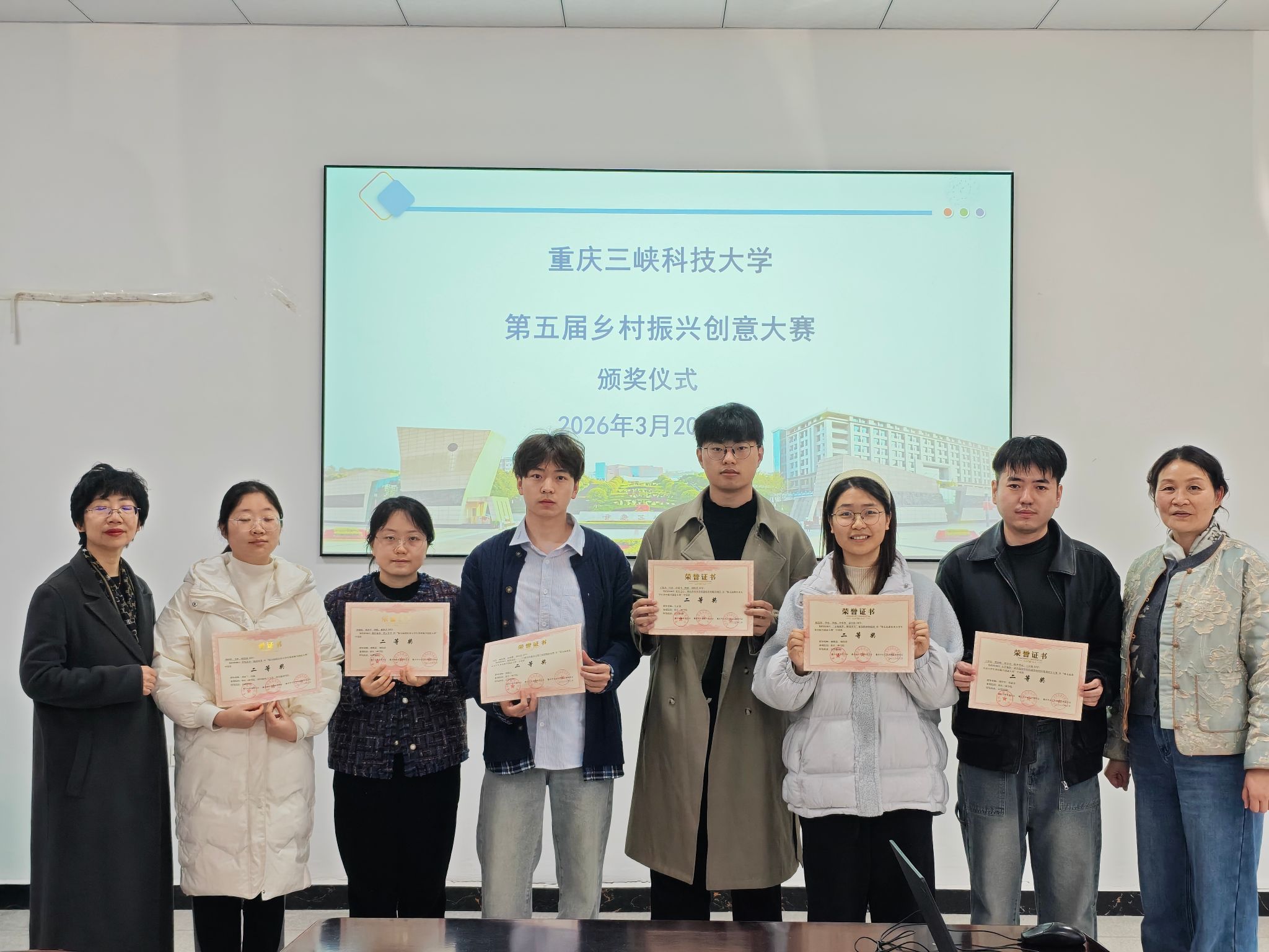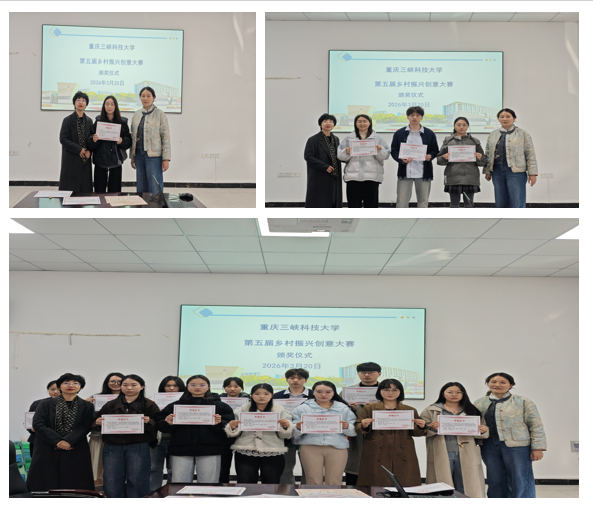 2026年3月20日下午,由教务处主办,太阳成集团tyc33455承办的太阳成集团官方网站第五届乡村振兴创意大赛颁奖仪式在博学3栋112会议室举办。学院院长邓晓霞,副院长冉璐参加颁奖仪式。